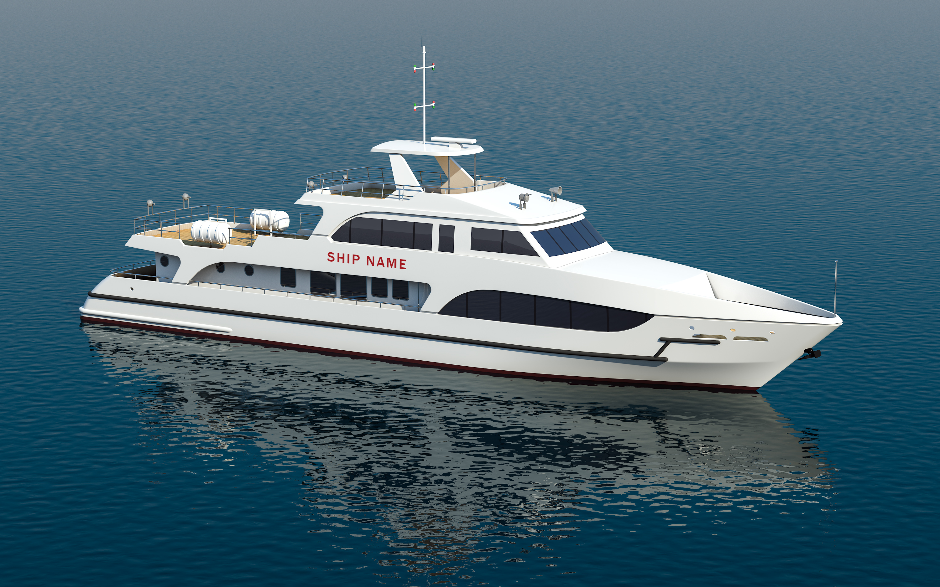 内河50客位高速船主船体为单底、单甲板、钢质全电焊结构,上层建筑为铝质电焊结构,由二台船用高速柴油机驱动,并配有高效螺旋桨推进。本船采用尾部带短折角的圆舭消波船型。