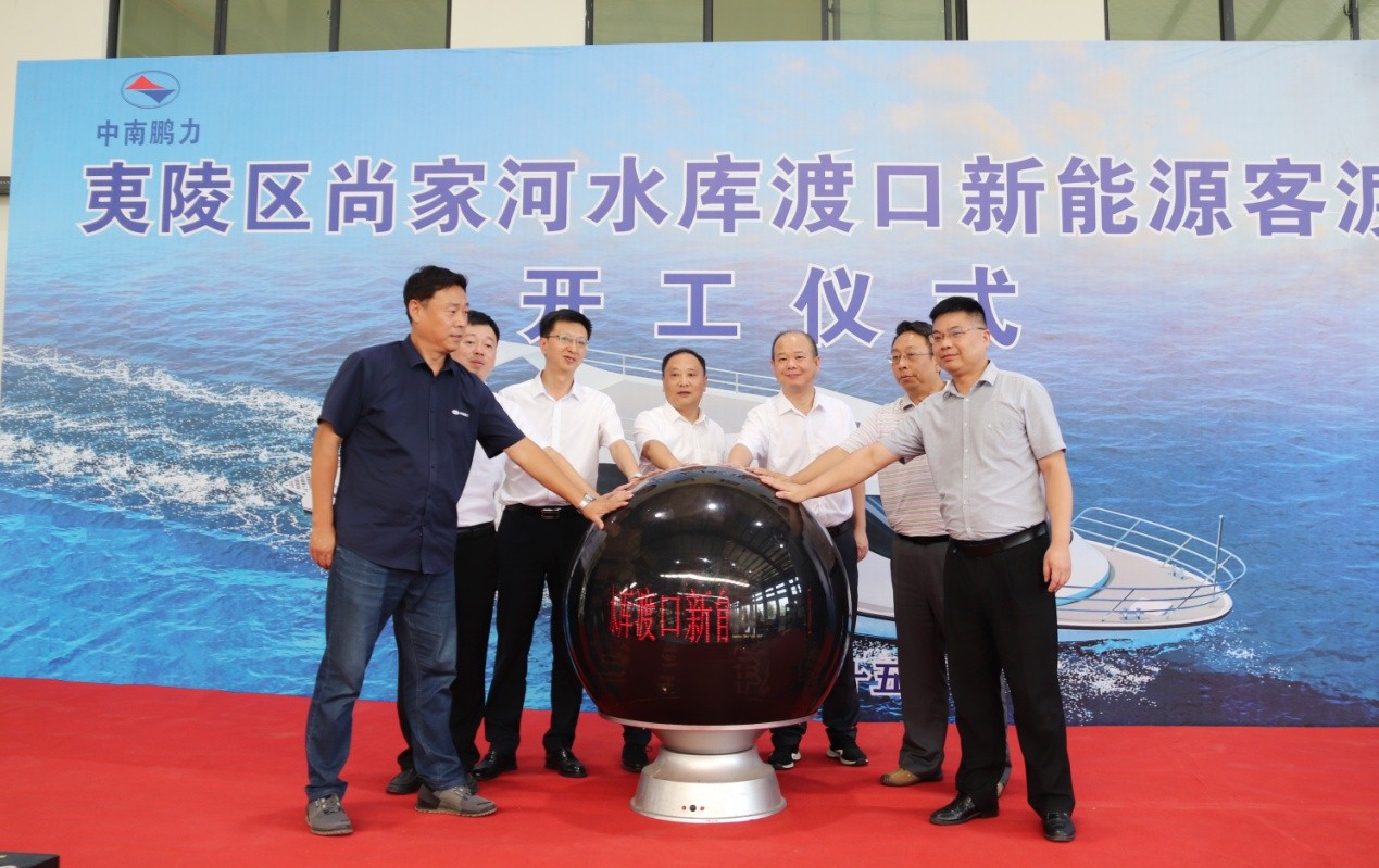 8月15日上午,由武汉理工船舶股份有限公司设计、中南鹏力海洋探测系统工程有限公司建造的宜昌首艘新能源标准客渡船舶开工仪式在中南鹏力江南工业园举行。宜昌市港航建设维护中心党委书记、主任梅常春,党委委员、副主任黄鸿,宜昌市船舶检验中心船检科负责人尤晓峰,夷陵区人大副主任陈立,夷陵区交通运输局副局长丁雪菲,夷陵区港航建设维护中心党支部书记、主任官巍,武汉理工船舶股份有限公司副总经理吴志东,宜昌将军山生态旅游发展集团有限公司副总经理田万生等嘉宾领导共同见证了开工仪式。