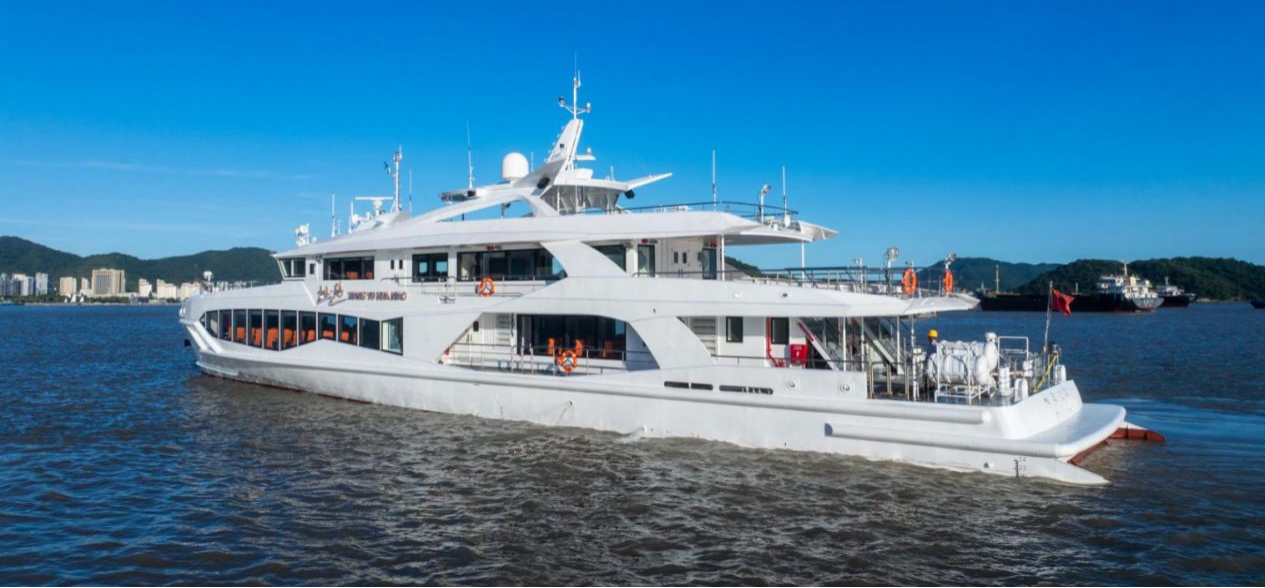 近日,由武汉理工船舶股份有限公司设计、浙江凯灵船厂建造的“相遇·花鸟”号50米级沿海高速客船在舟山海域顺利交付。这艘专为嵊泗列岛海上交通量身定制的新锐船舶,将显著提升岛际交通效率与舒适度,为海岛居民出行和旅游发展注入强劲动力。