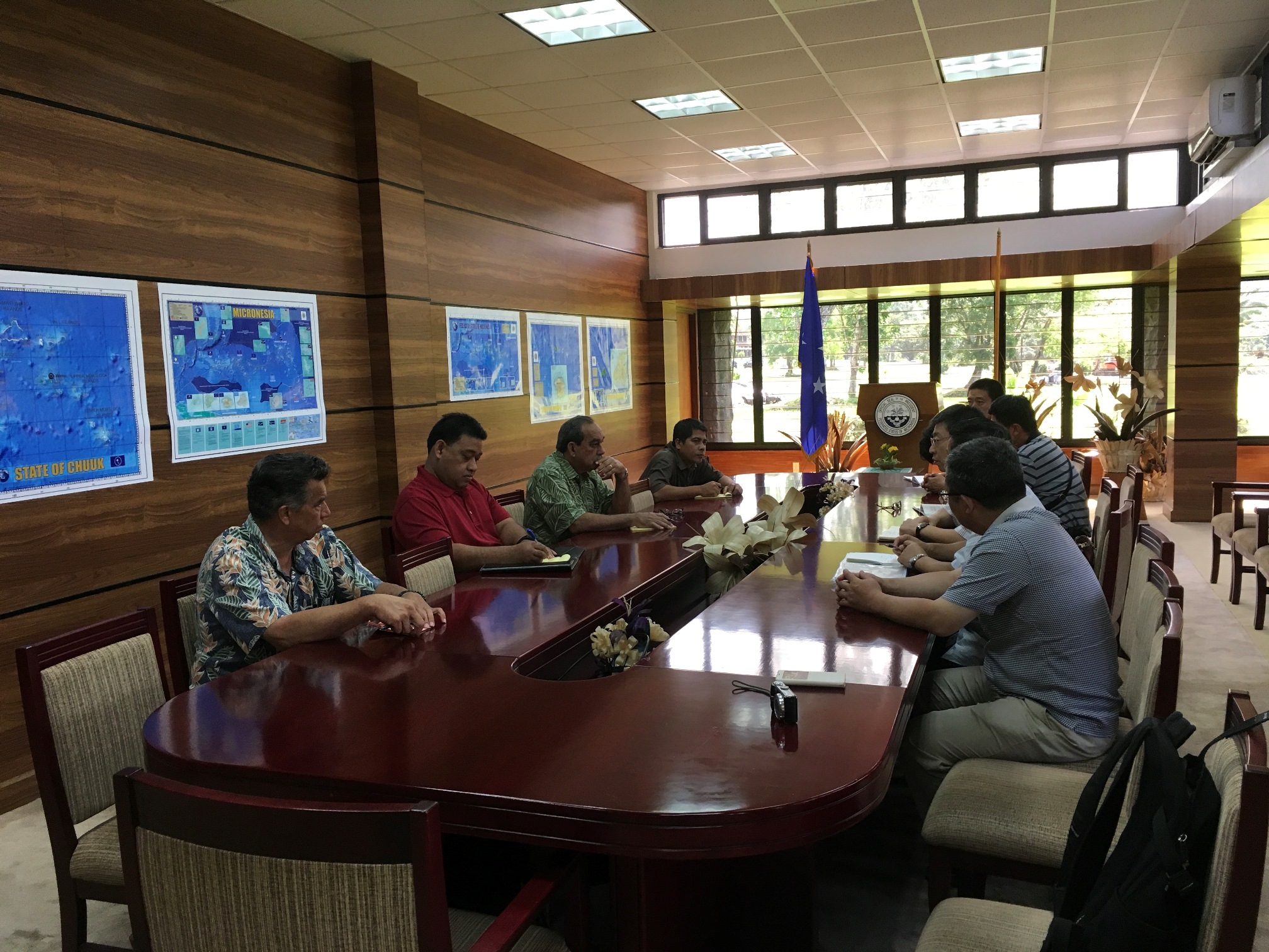 谭祖胜组长代表理工船舶考察组对克里斯琴总统的亲自接见表示衷心感谢,并向总统介绍了在雅浦州和丘克州的考察工作情况。