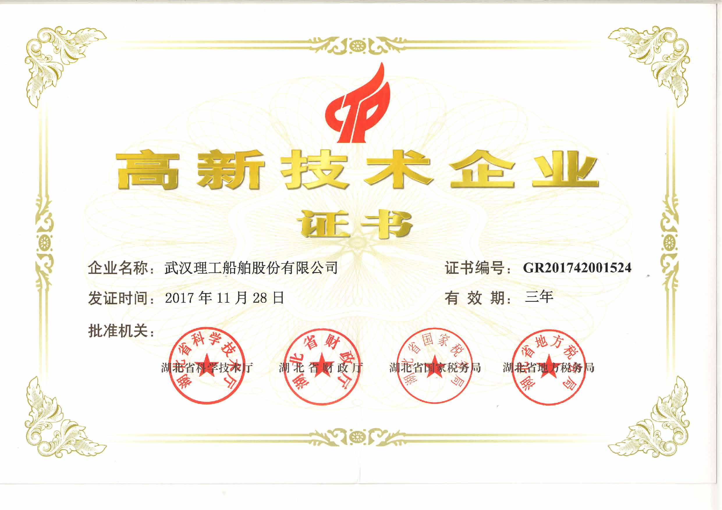 经高新技术企业认定管理工作领导小组办公室认定,公司于2017年11月28日获得湖北省高新技术企业证书。