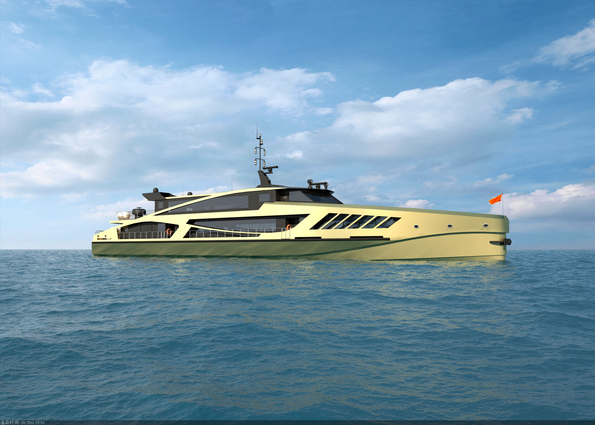 乘客人数238人   主机额定功率 2X2013kW   设计航速28.5kn