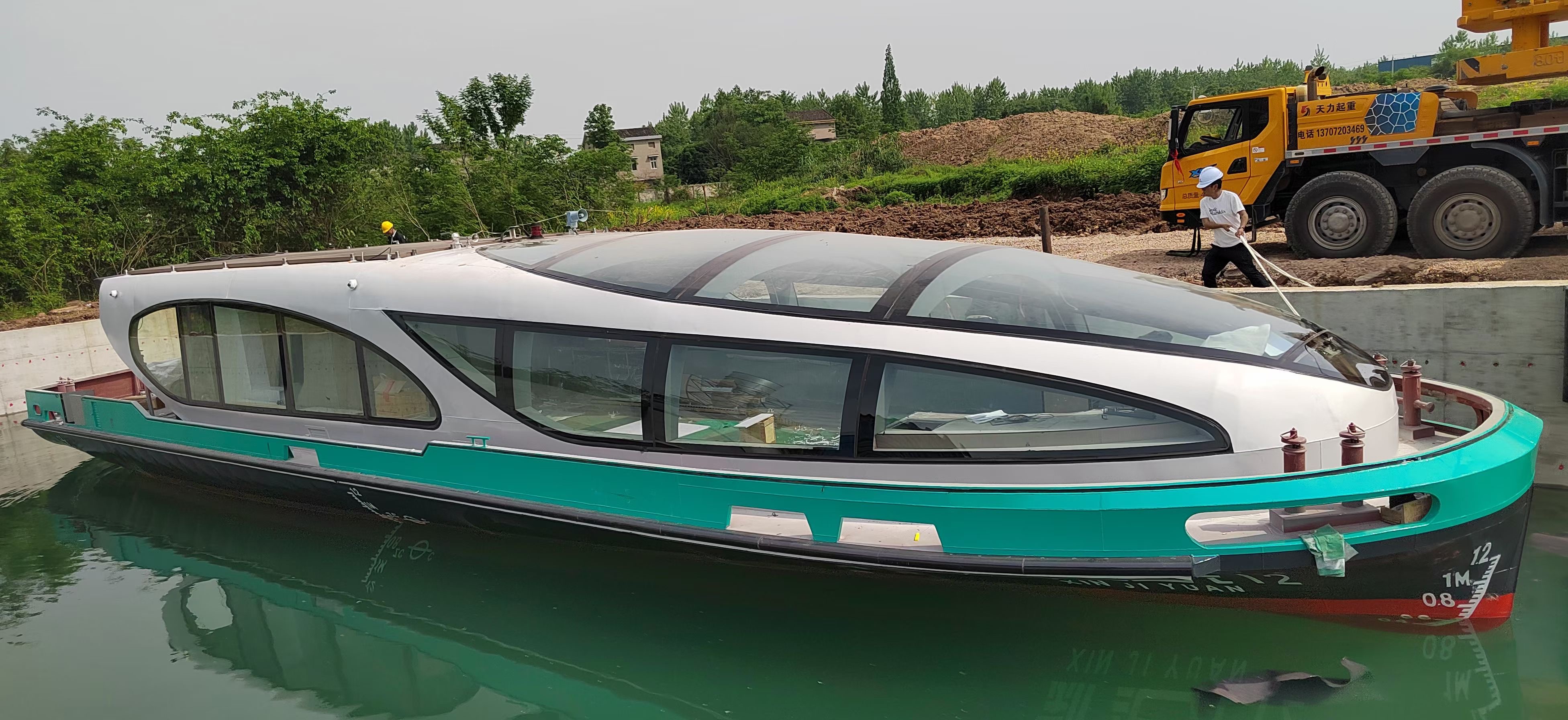 该游览船总长20.8米,型宽5.3米,型深1.5米,是根据天津海河航道特征及运营要求量身打造的观光游览船,这是我司为客户量身定制的又一高端新能源船舶产品。该船船身线条流畅,造型美观,既体现了传统韵味,又融入了现代元素。每当夜幕降临,该游览船在绚丽的科技灯光下,如同萤火虫般呈现出梦幻的光芒,熠熠生辉,令人陶醉,带给游客沉浸式的游览体验。