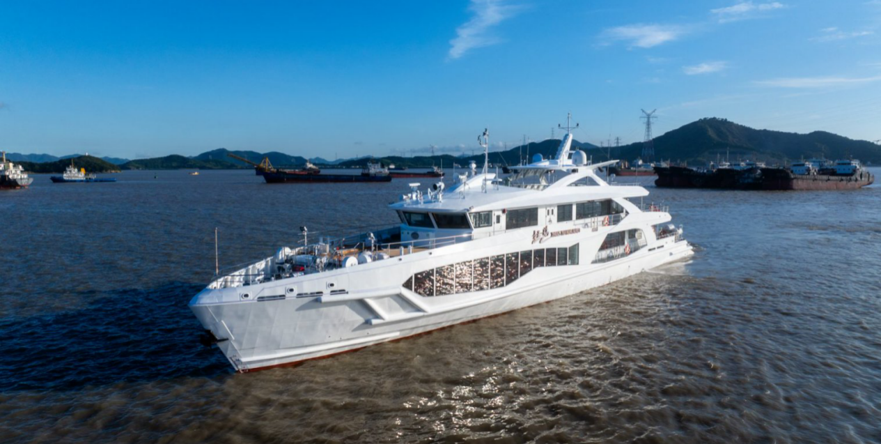 近日,由武汉理工船舶股份有限公司设计、浙江凯灵船厂建造的“相遇·花鸟”号50米级沿海高速客船在舟山海域顺利交付。这艘专为嵊泗列岛海上交通量身定制的新锐船舶,将显著提升岛际交通效率与舒适度,为海岛居民出行和旅游发展注入强劲动力。