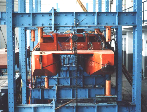 长20m,宽9m,承载能力为:最大弯矩2000t·m,最大扭矩900t·m,最大水平推力1000t,配有大型加载架多套及美国MTS1005025多点动力加载与分析系统,可对结构进行拉伸、压缩、弯曲、扭转强度和刚度试验和在各种复杂载荷作用下动力响应模拟试验。