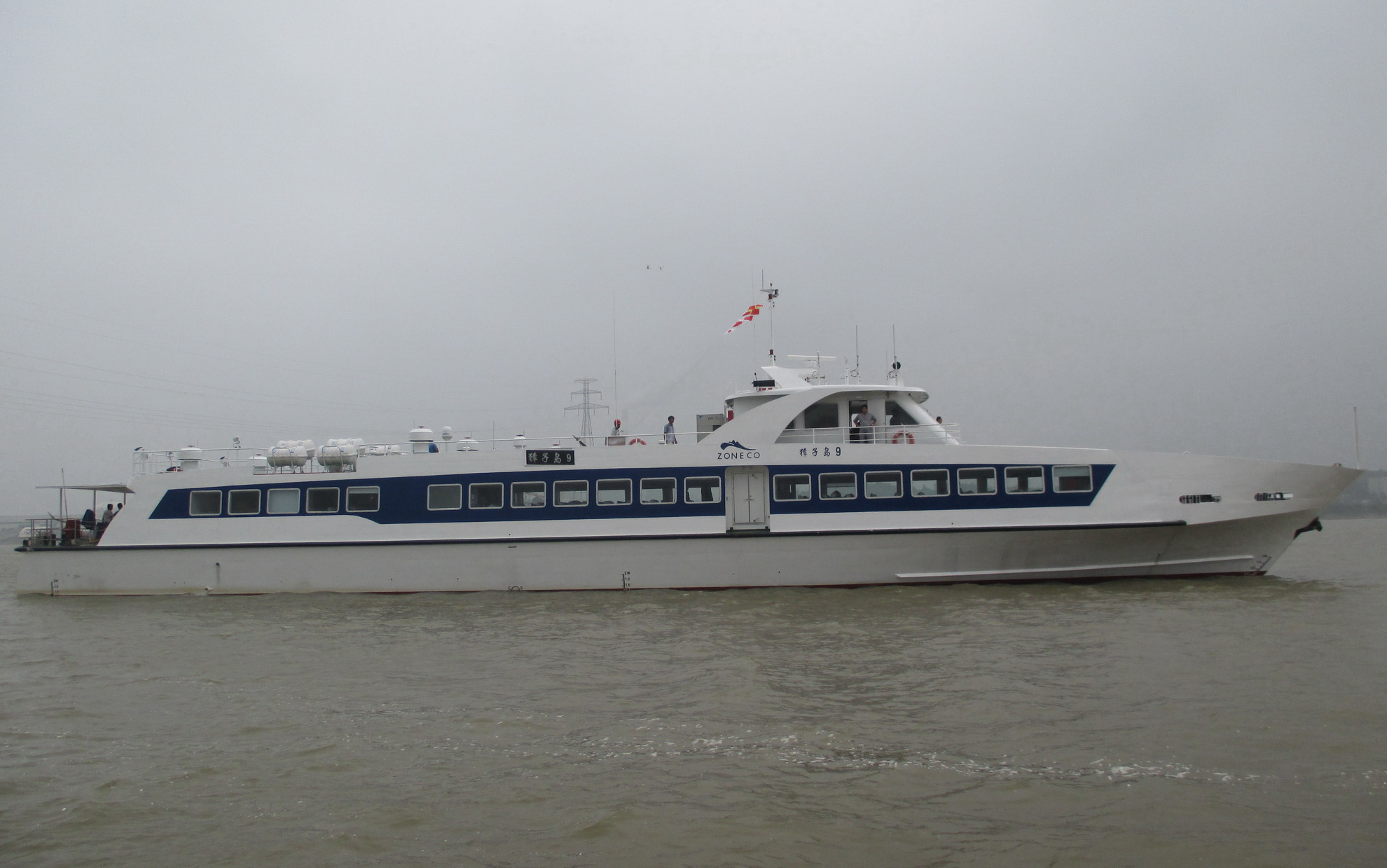 在设计排水量条件下,主机发出100%额定功率,光洁船身,蒲氏风不大于3级,浪高不大于2级,深水试航速度为25kn