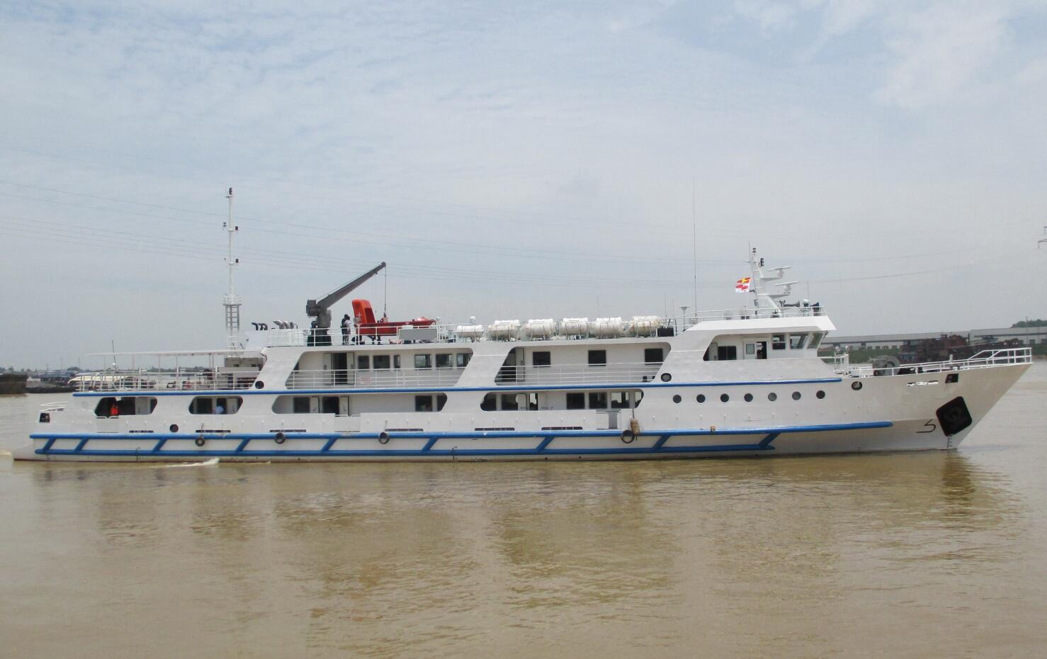 总长46.90m 型宽7.40m 型深3.55m 设计吃水1.60m