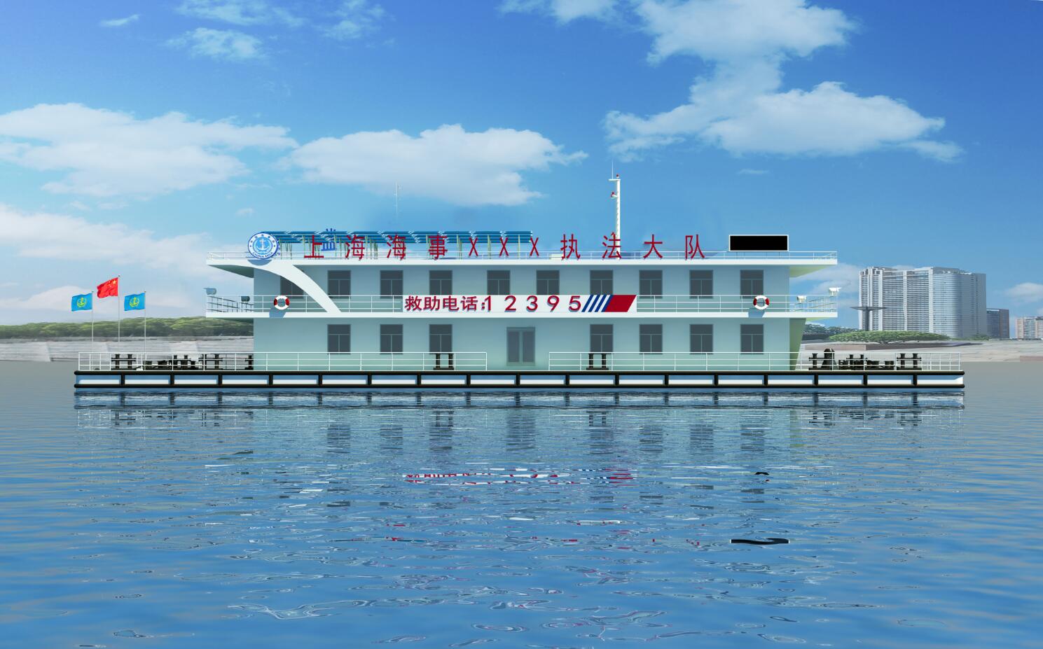 船型主要用于供海事巡逻艇日常停靠,满足海事办事机构或派出机构(调查处理水上交通事故、办理船舶及船舶单位申报办证等海事业务)日常办公、召开小型会