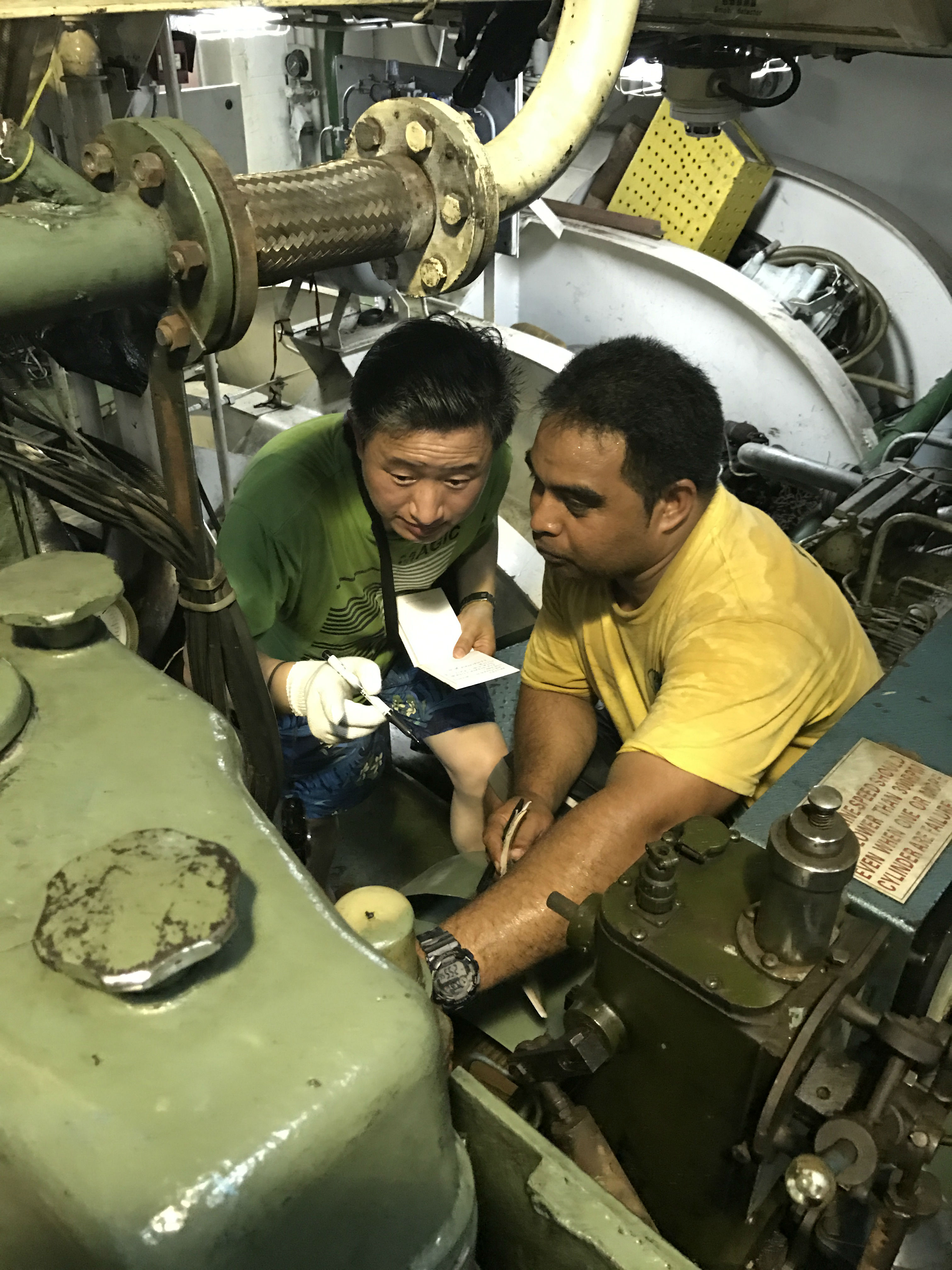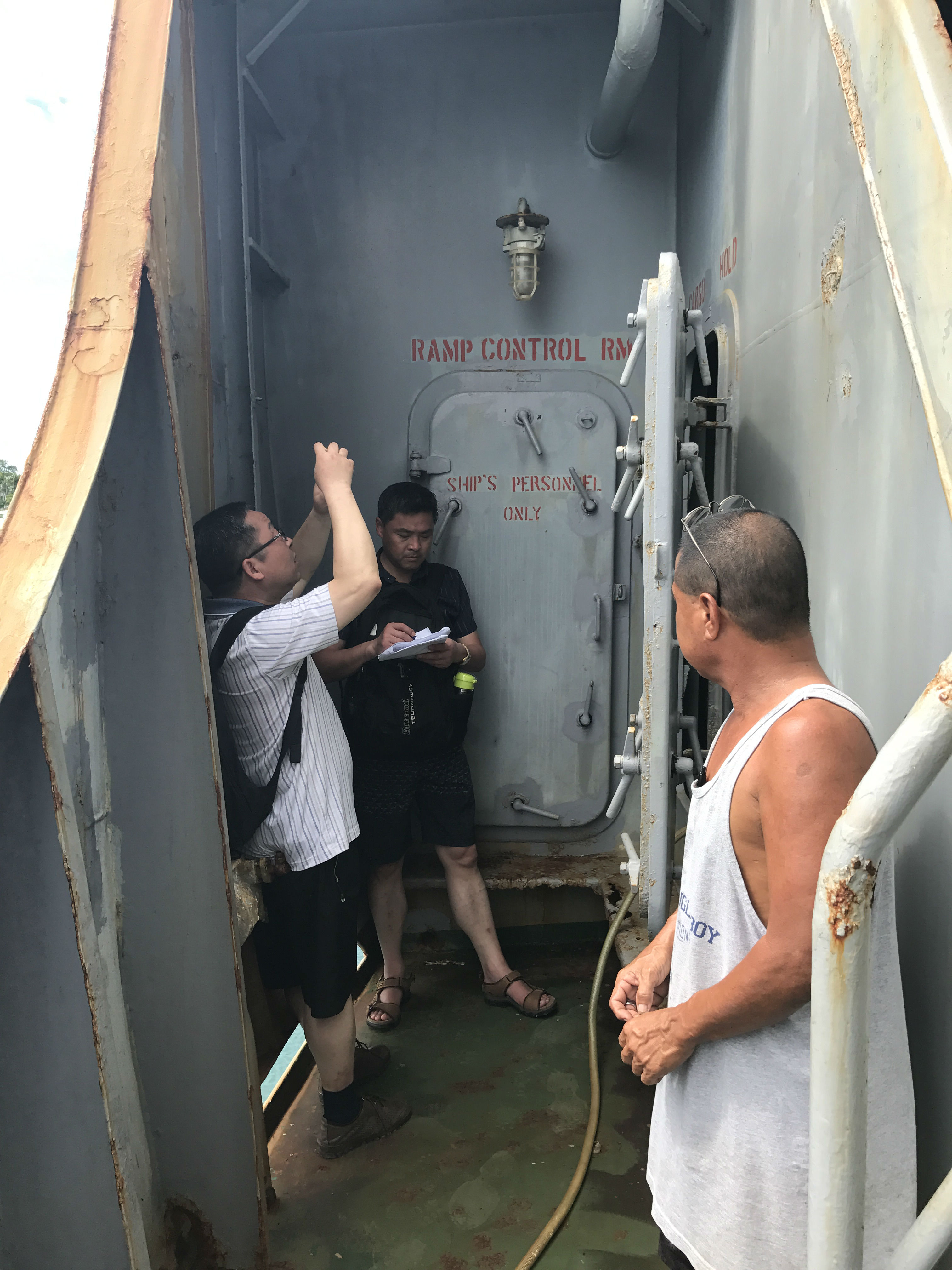 3月29日上午,双方在雅浦州政府举行协调会,就考察组在雅浦州的工作计划与密方充分沟通。雅浦州副州长JamesYangetmai,州长办公室、州交通局等部门负责人和Hapilmohol1客货两用船船长、轮机长等参加会议。当天下午,在密方人员陪同下,理工船舶考察组登船开展调查评估工作。