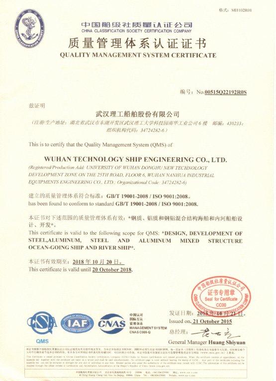In 23rd, December, 2015, WUT Ship CO., LTD, as a national grade a general ship design unit, which was approved by the Hubei Provincial Office of national defense science and industry organizations. Under its on-site evaluation and acceptance, finally, we passed the qualification assessment with success, and acquired the qualification certificate.